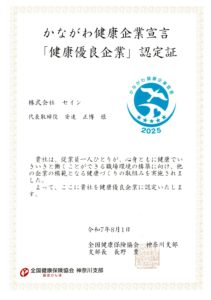 かながわ健康企業宣言「健康優良企業」認定証